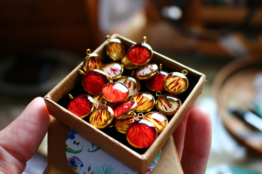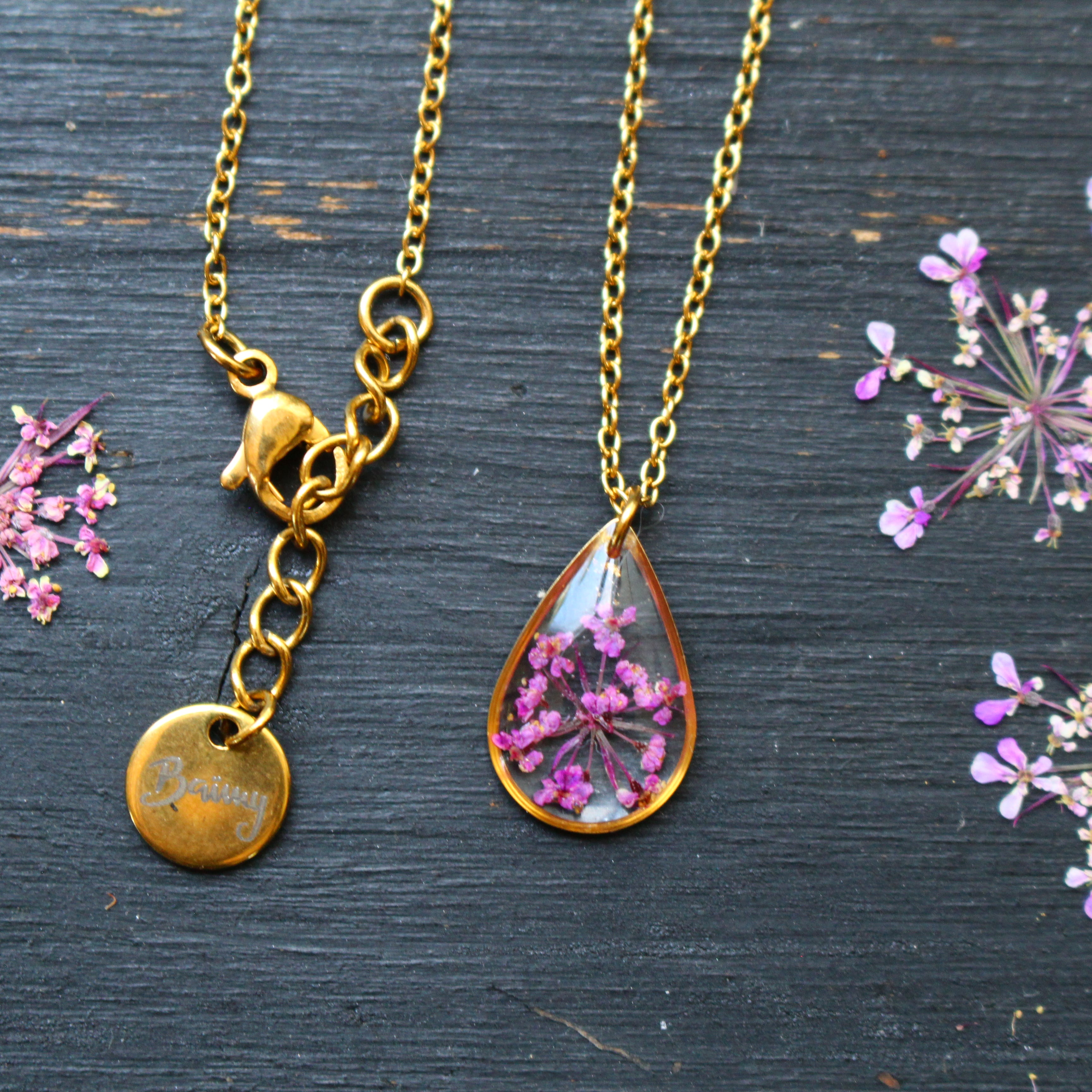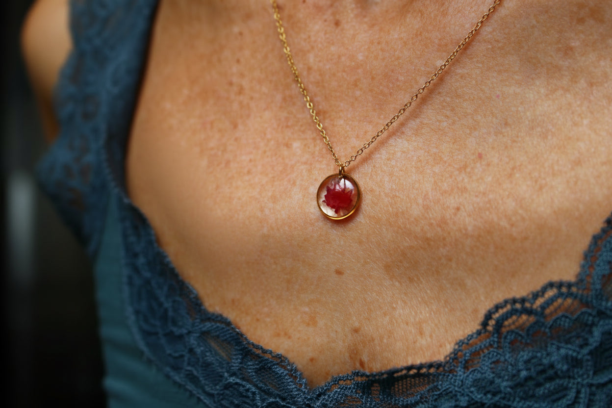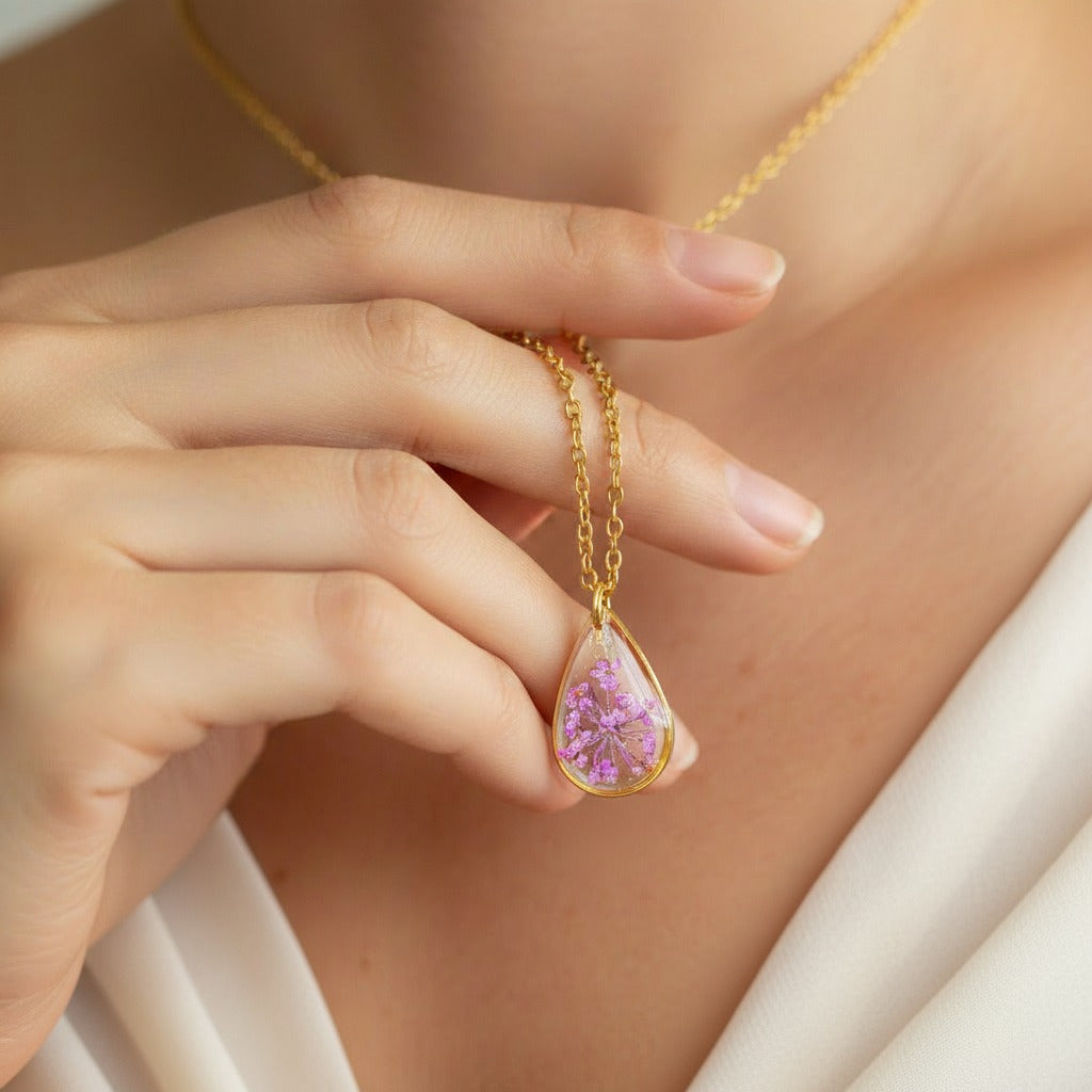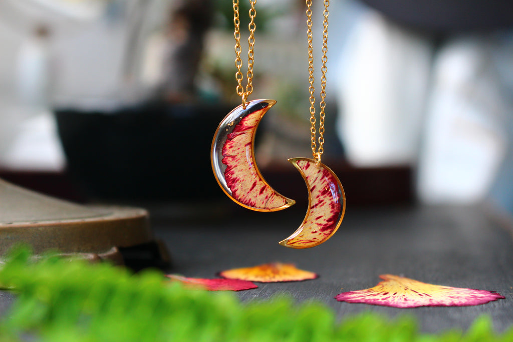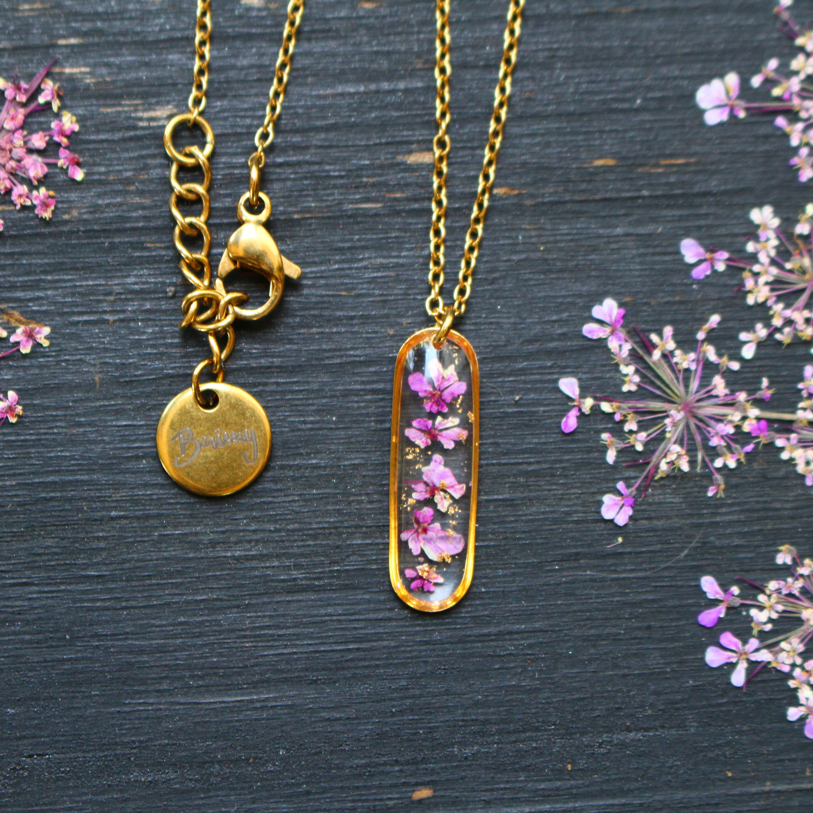Depuis mon atelier à Saint-Leu, je crée des bijoux uniques à partir de matériaux naturels comme des fleurs, des pierres, et des coquillages.