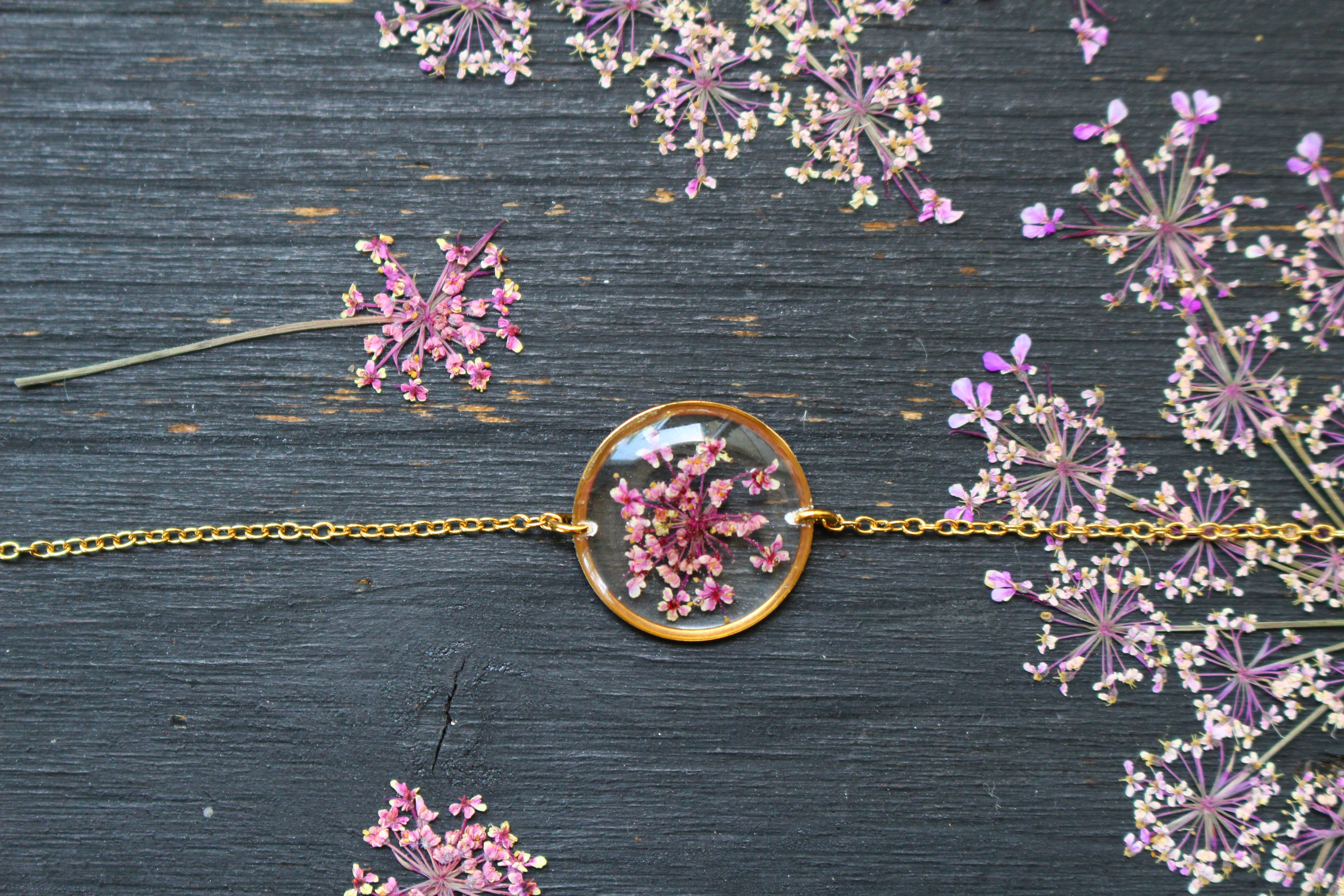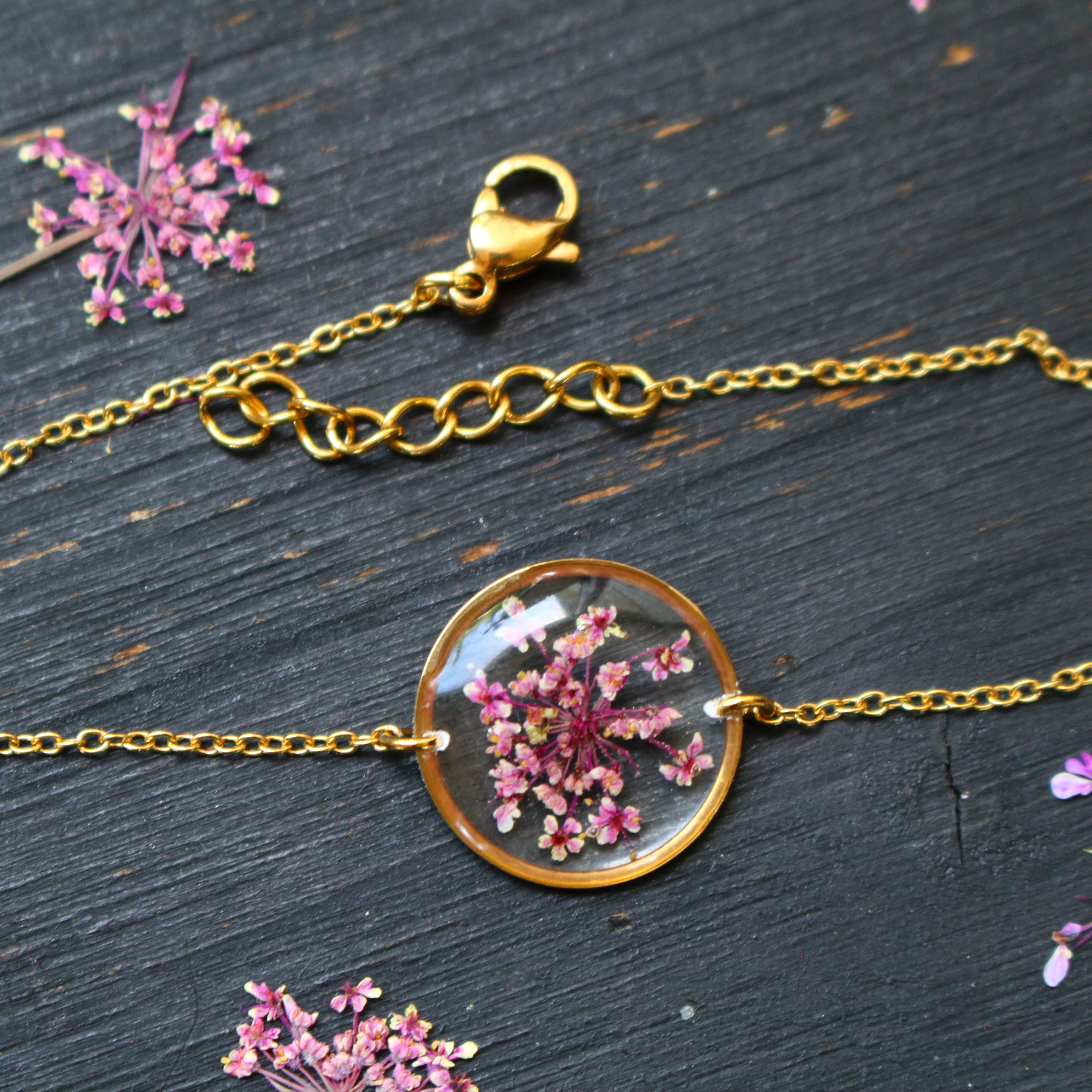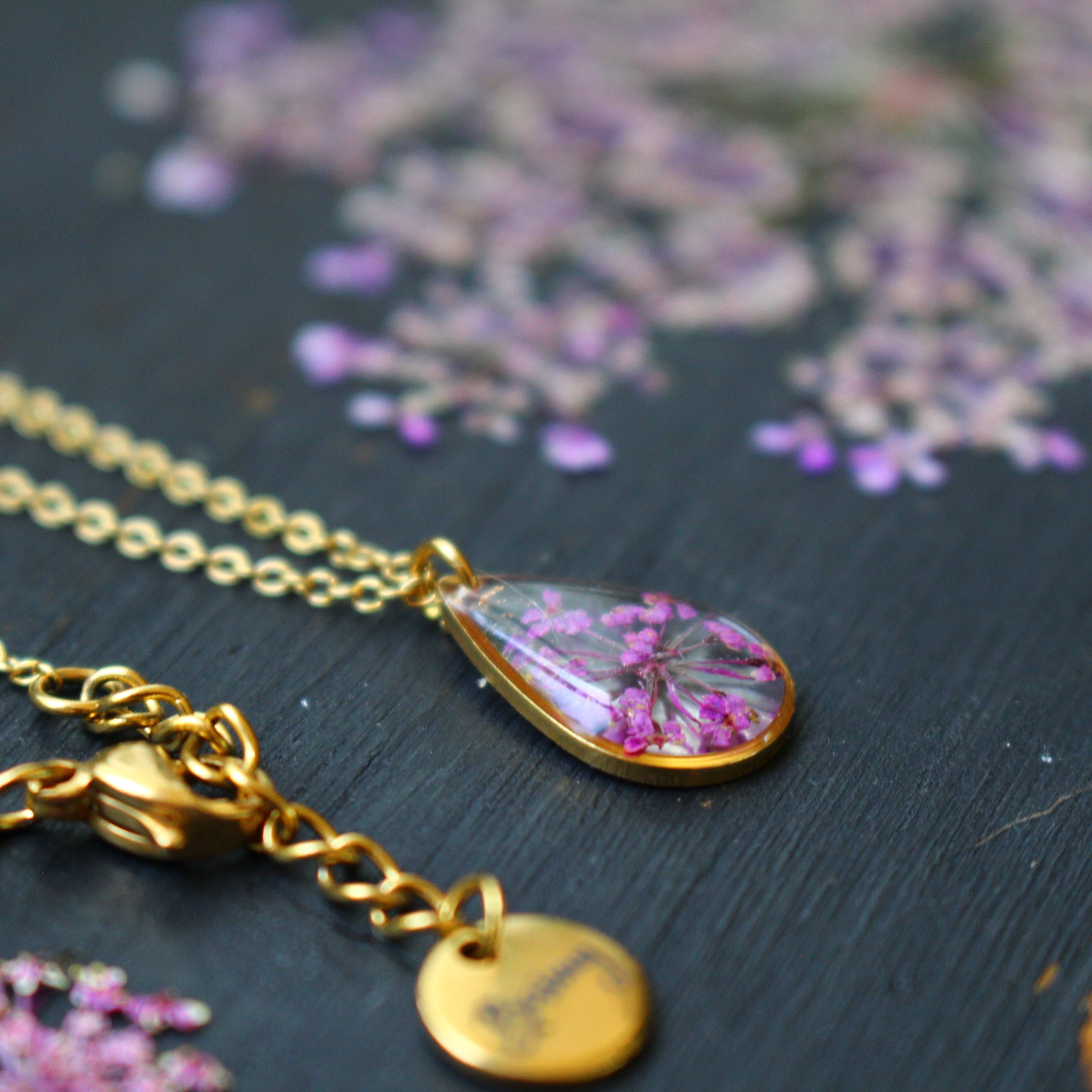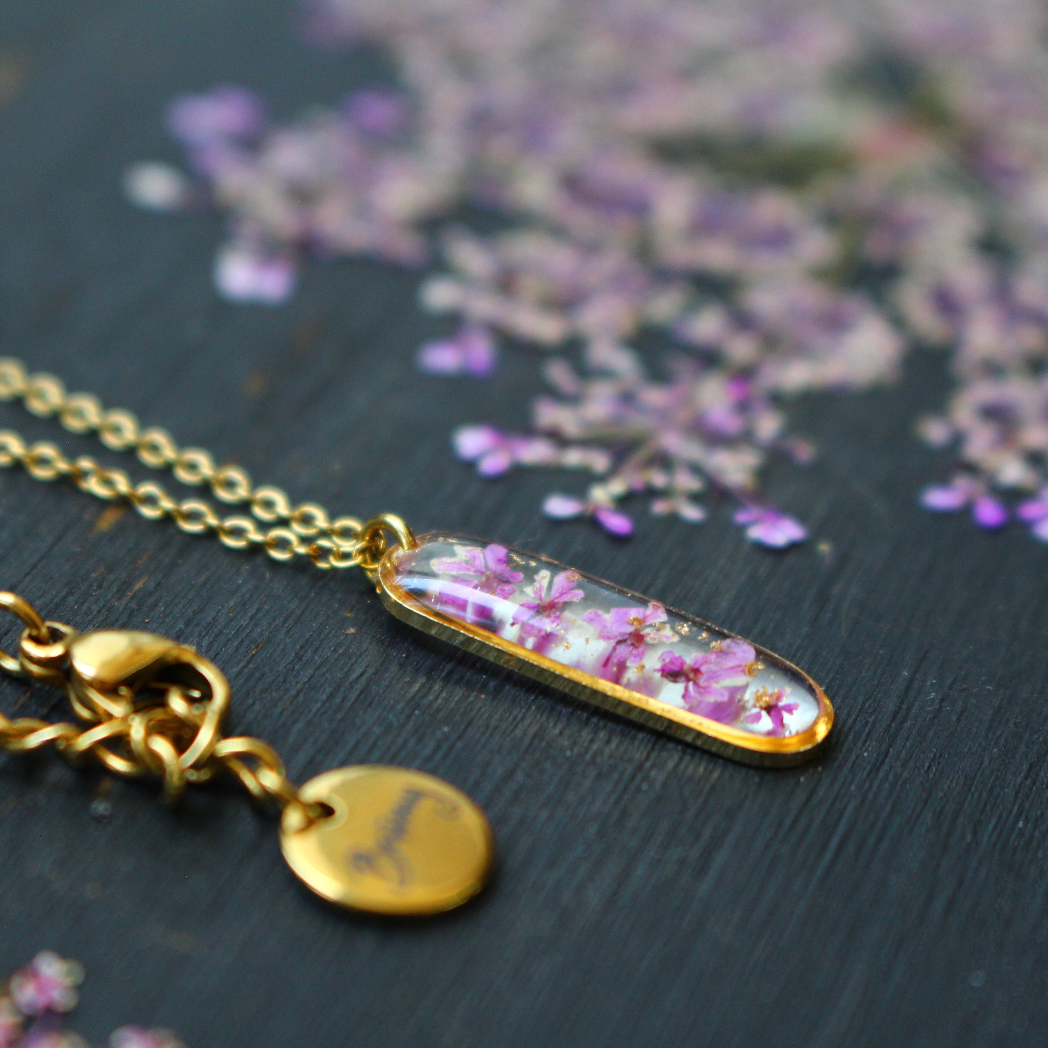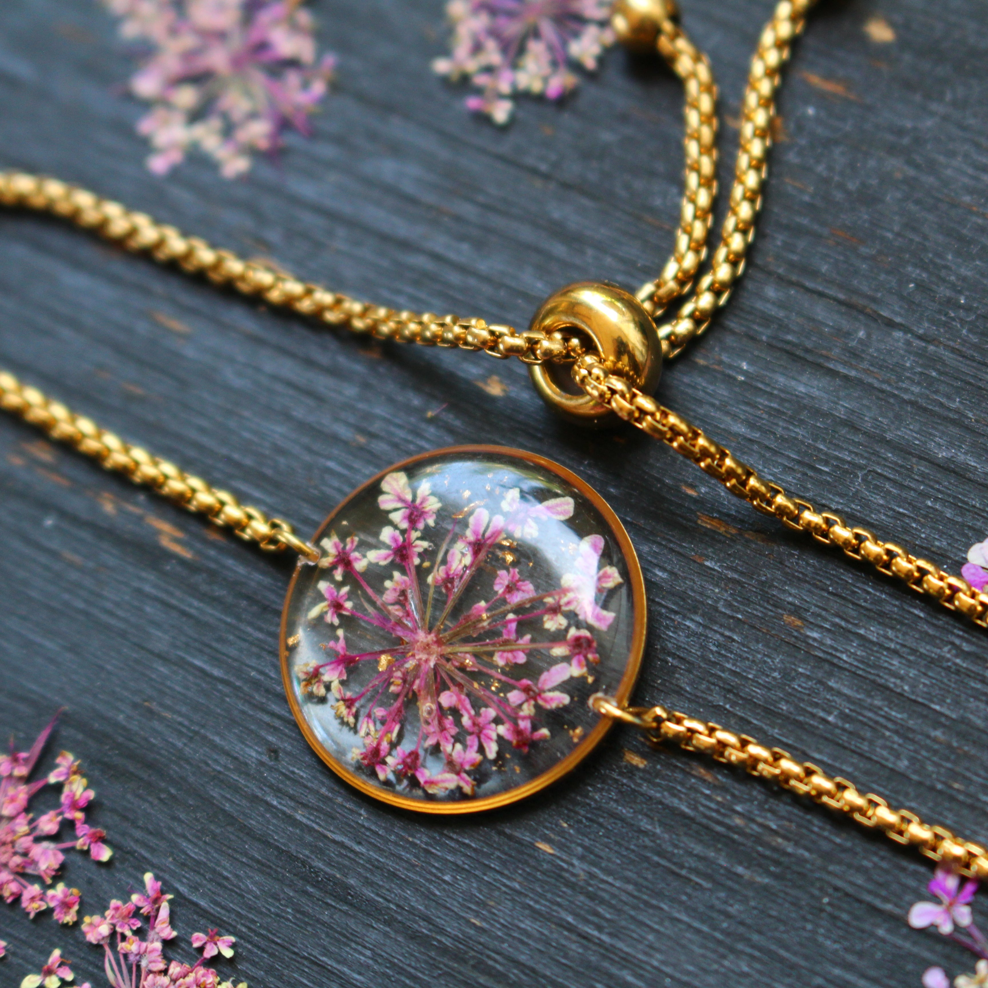 Depuis mon atelier à Saint-Leu, je crée des bijoux uniques à partir de matériaux naturels comme des fleurs, des pierres, et des coquillages.
