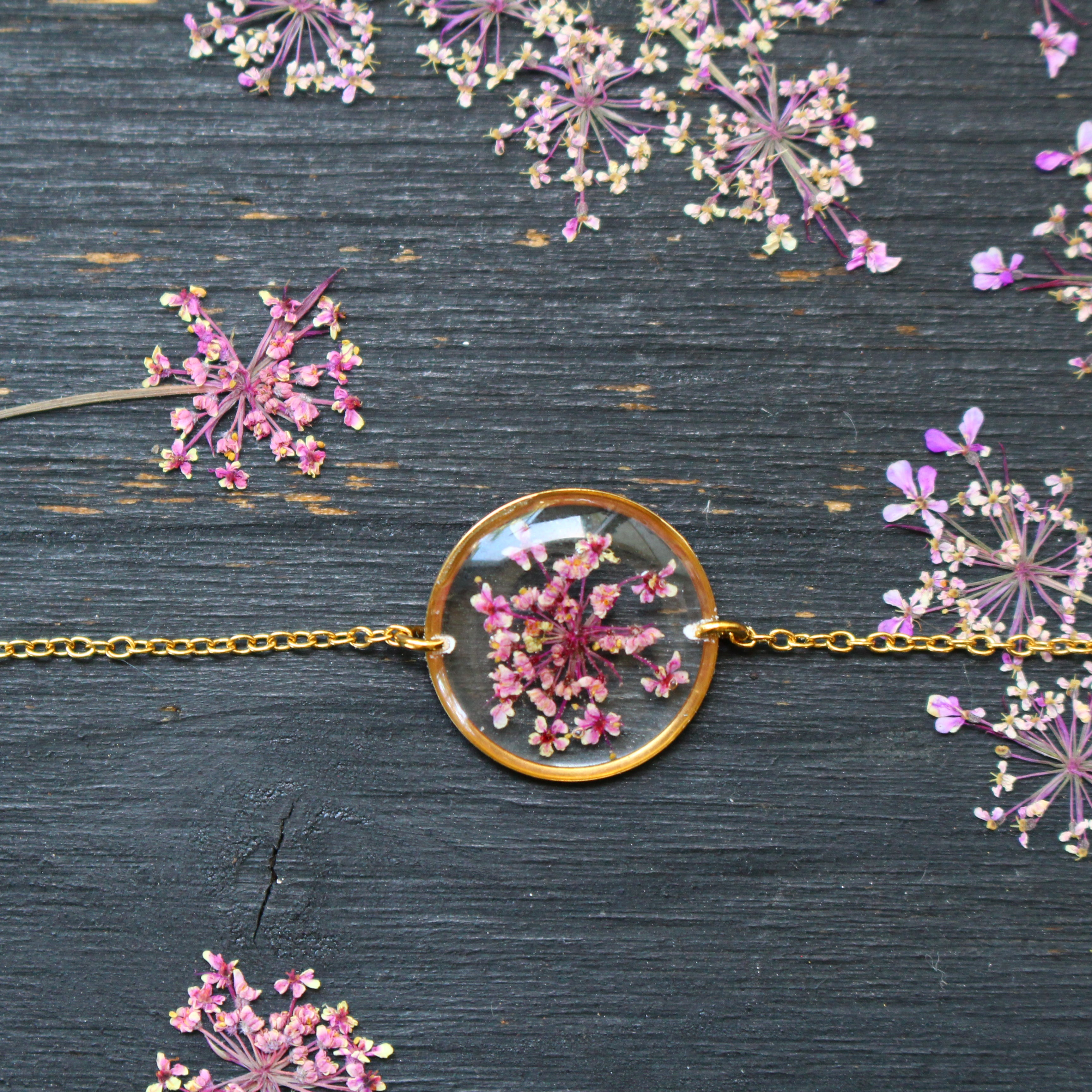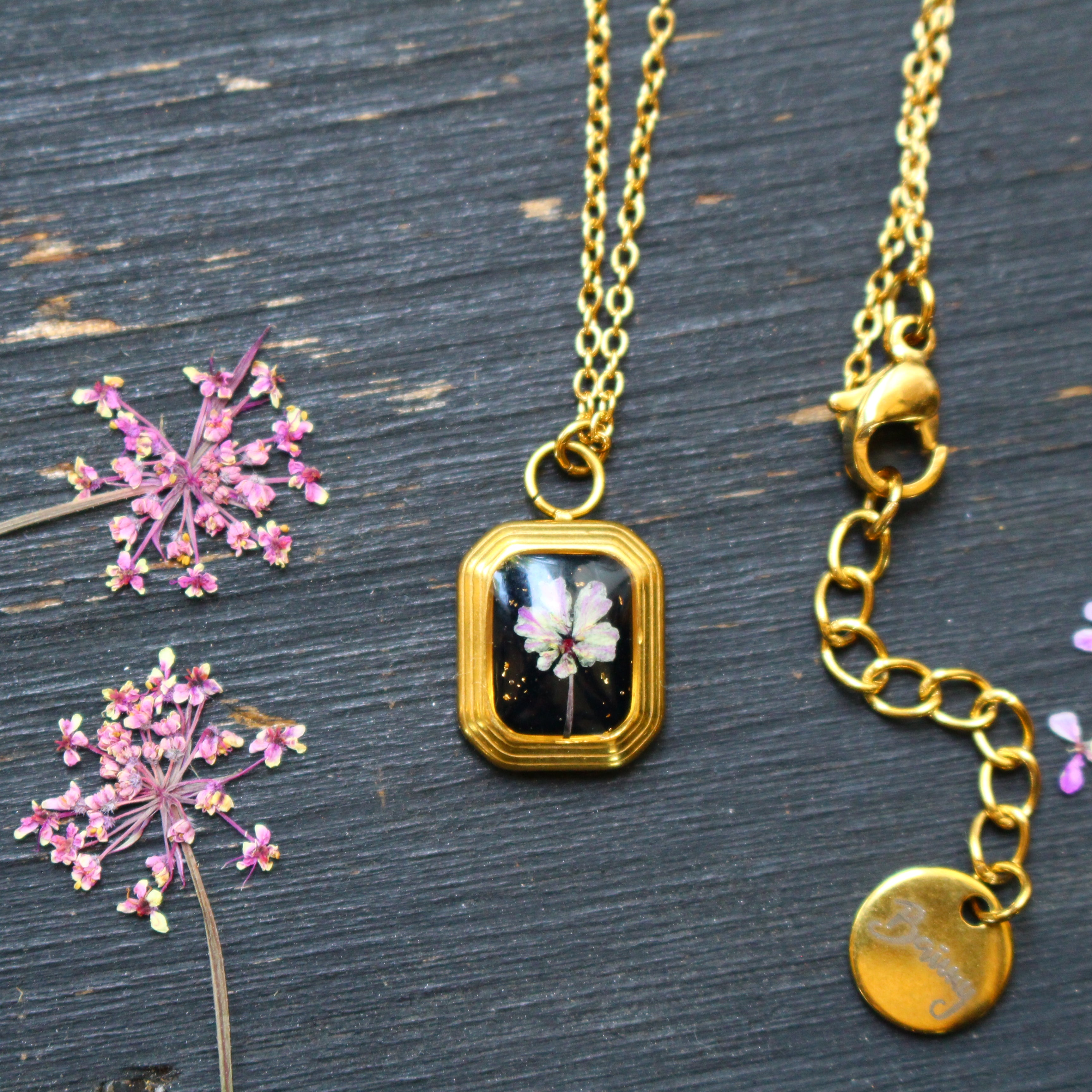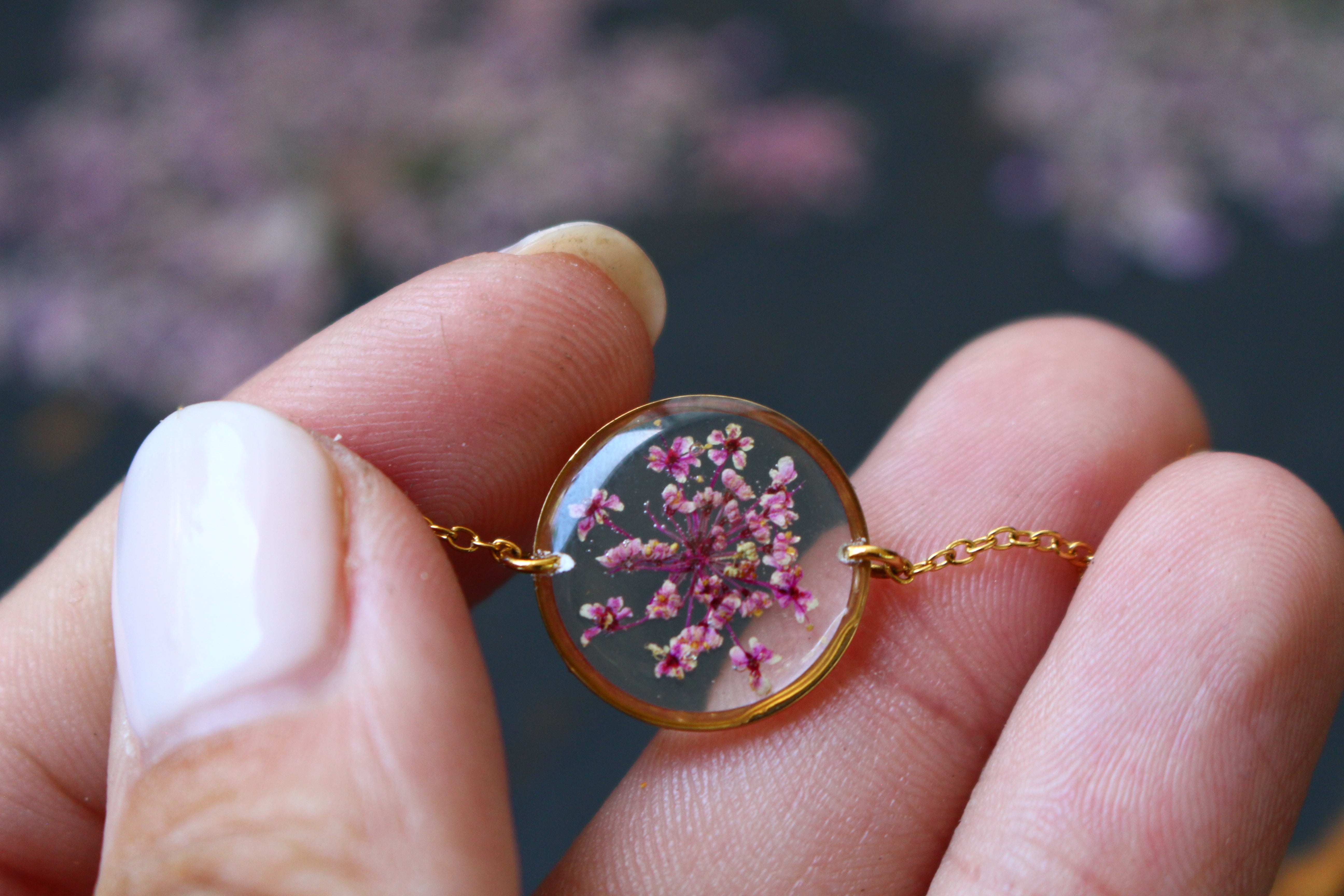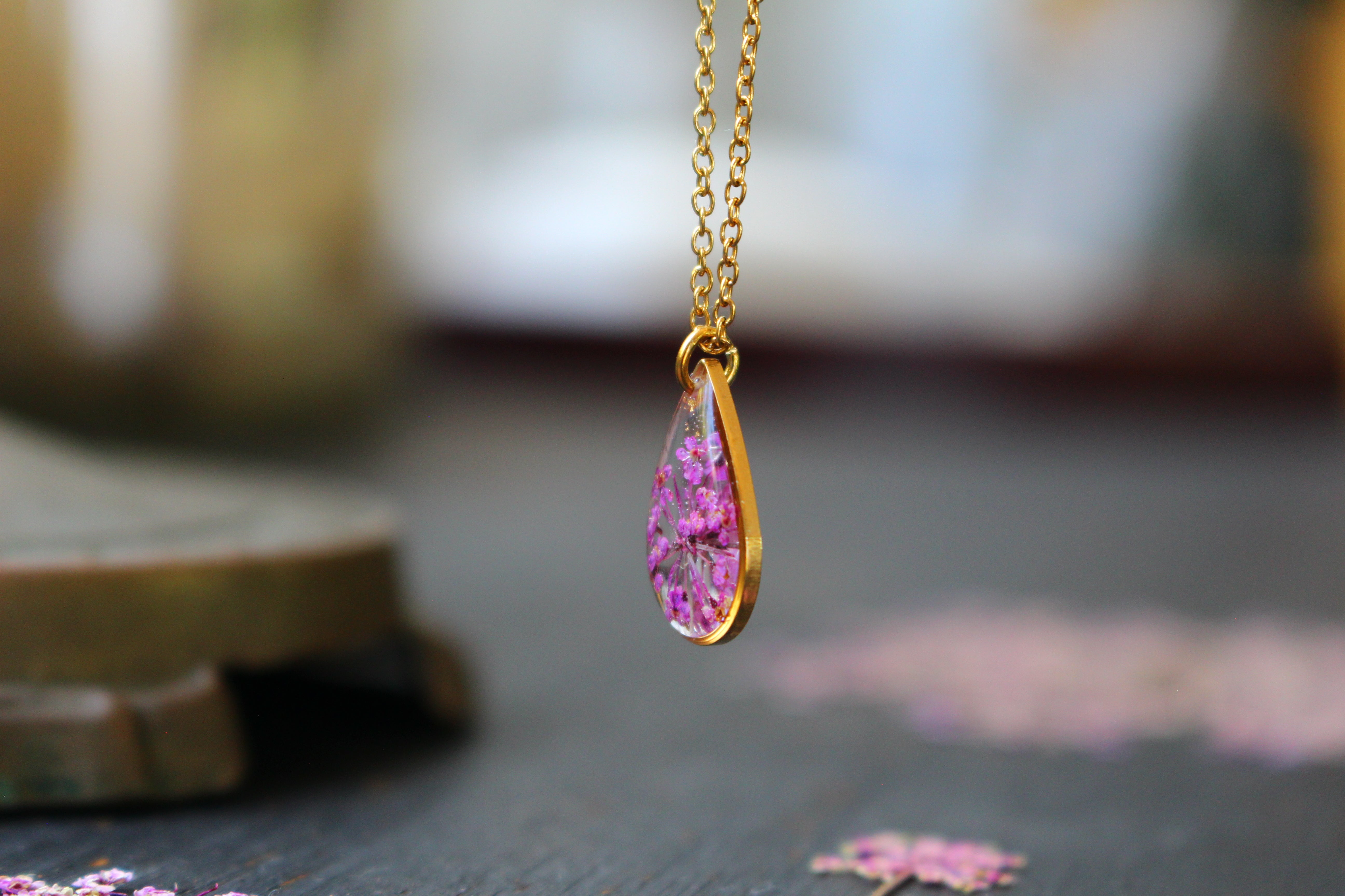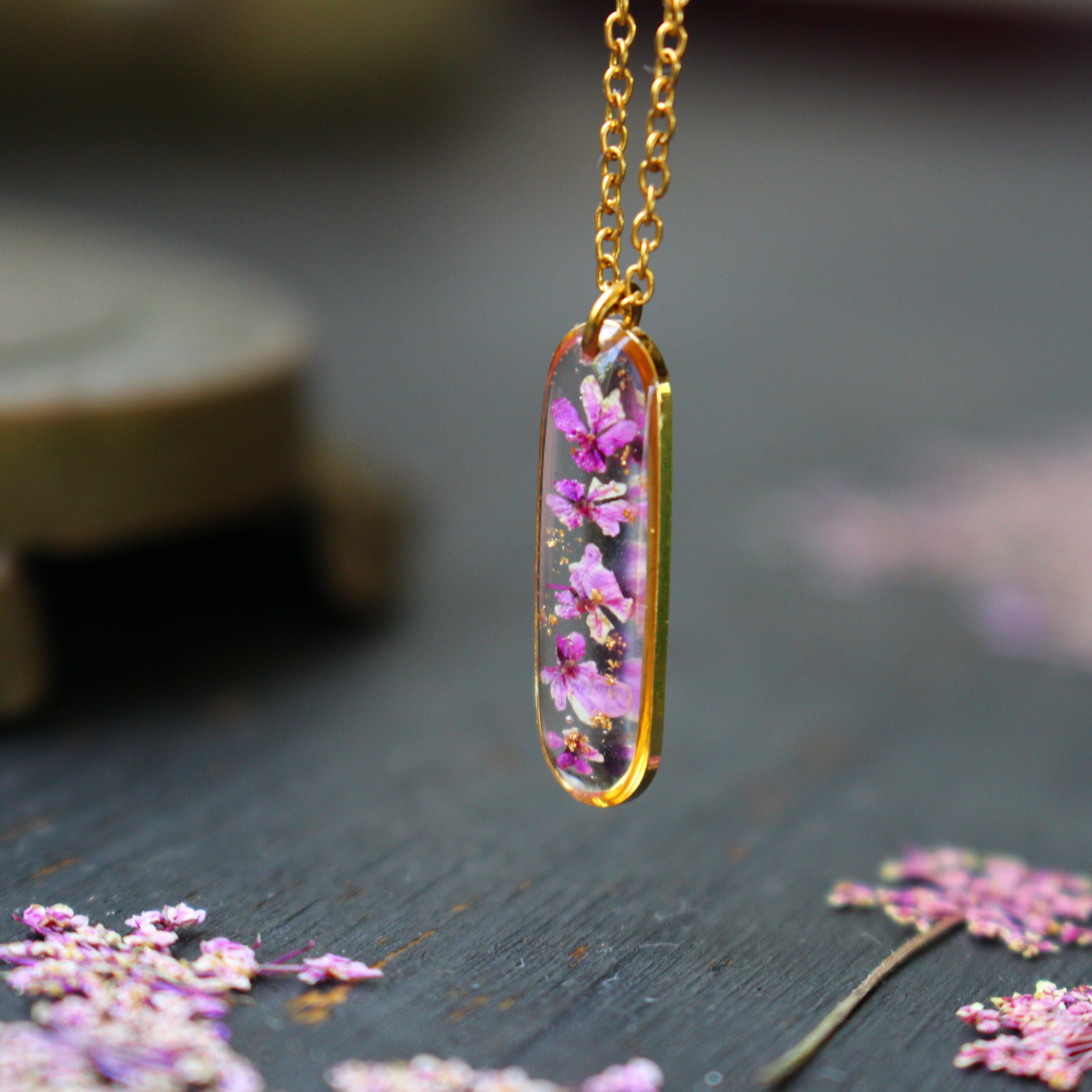 Depuis mon atelier à Saint-Leu, je crée des bijoux uniques à partir de matériaux naturels comme des fleurs, des pierres, et des coquillages.