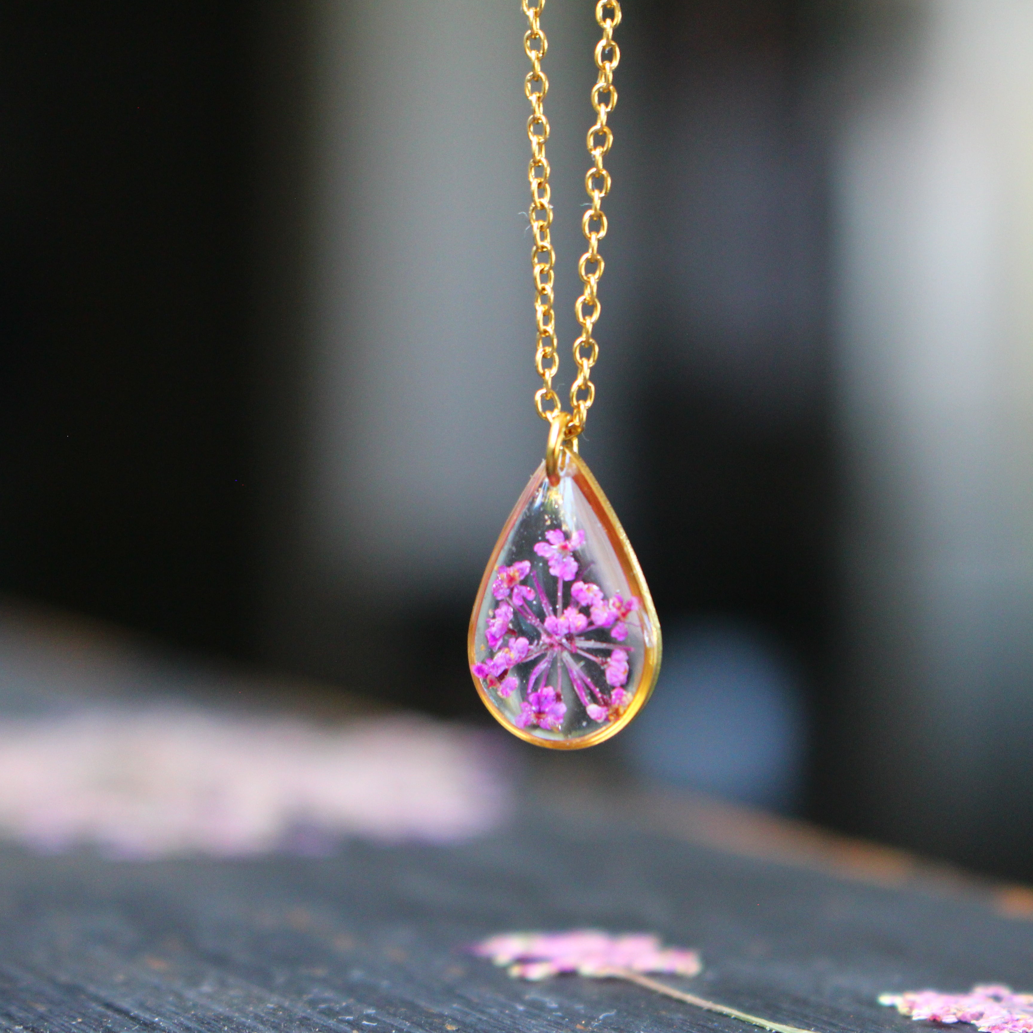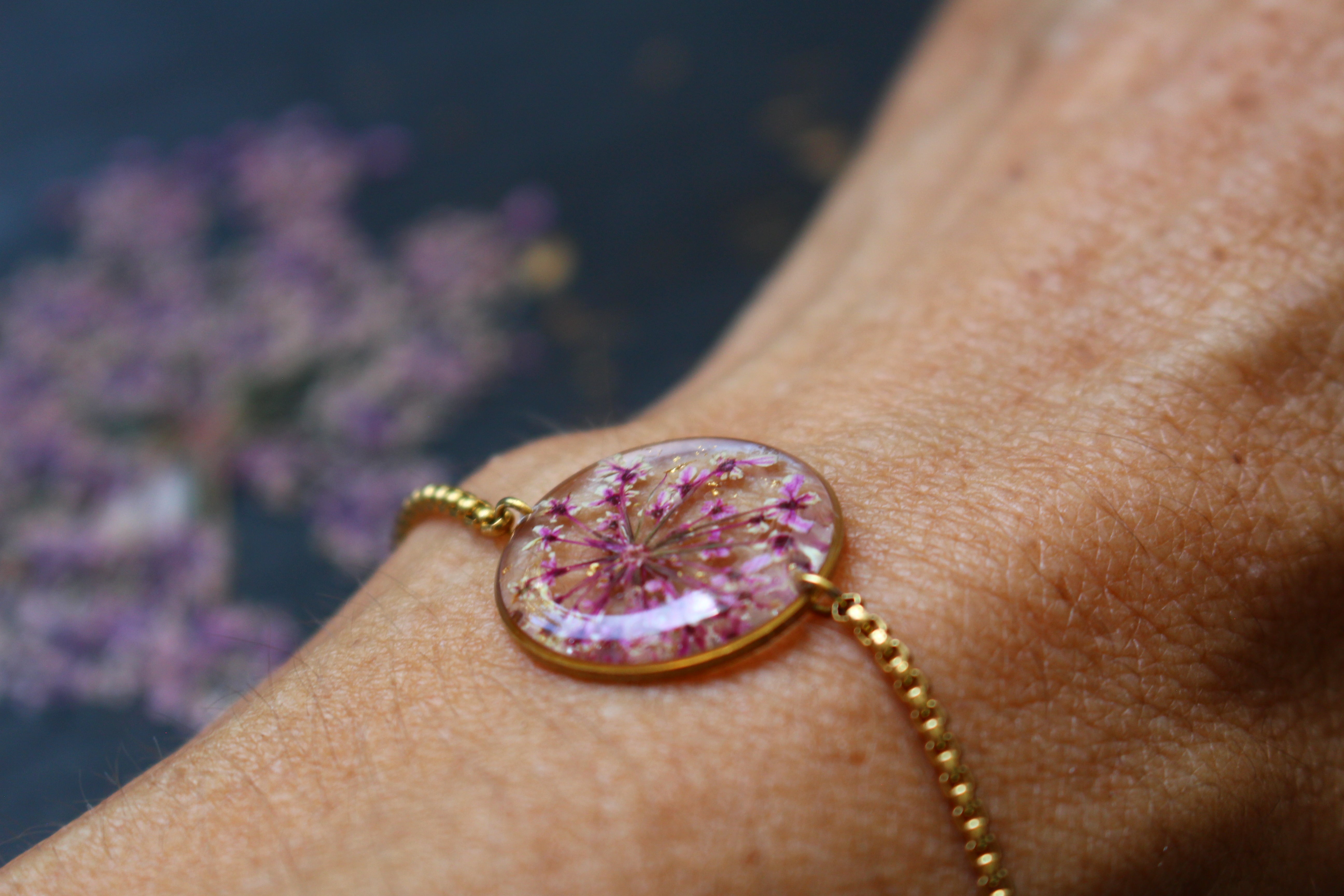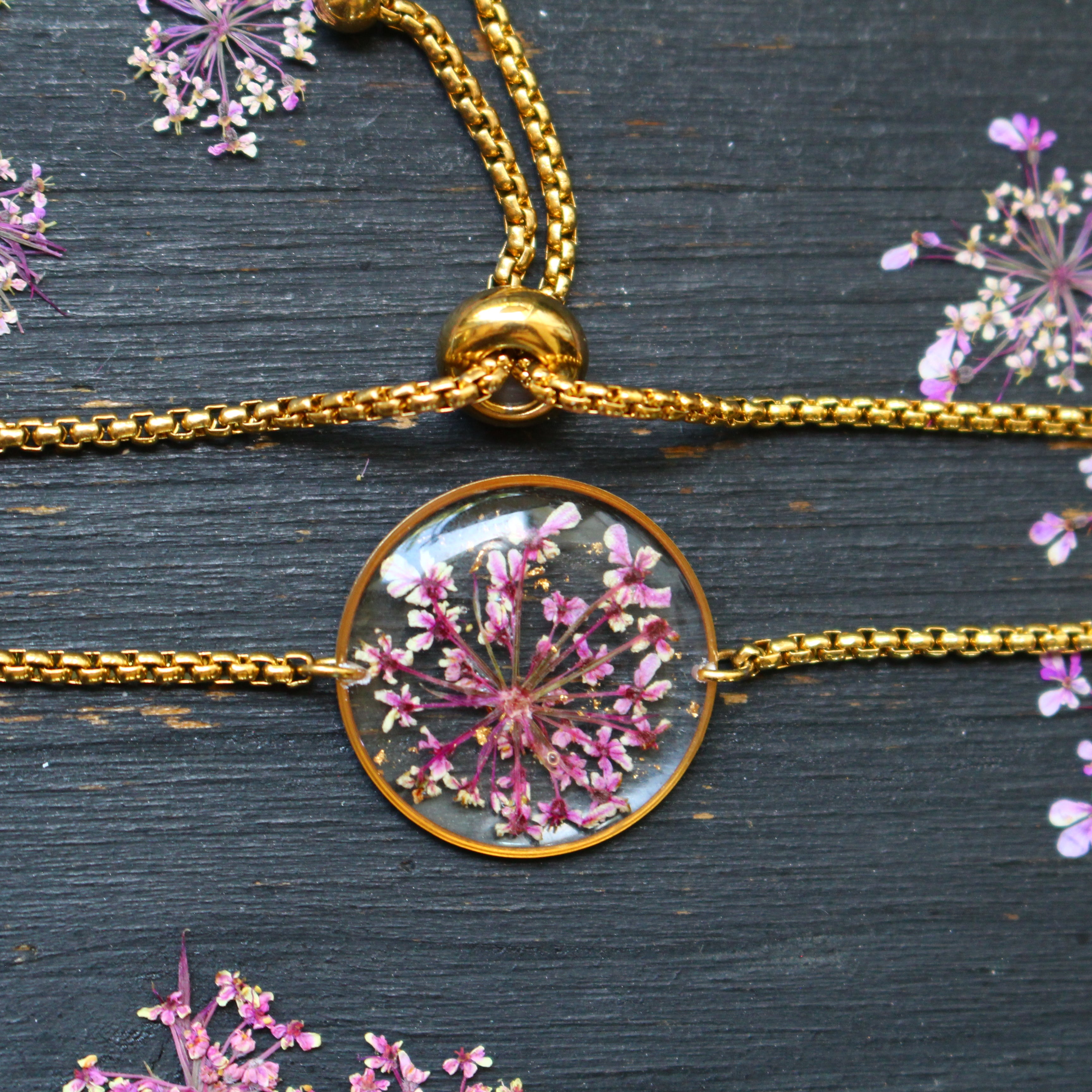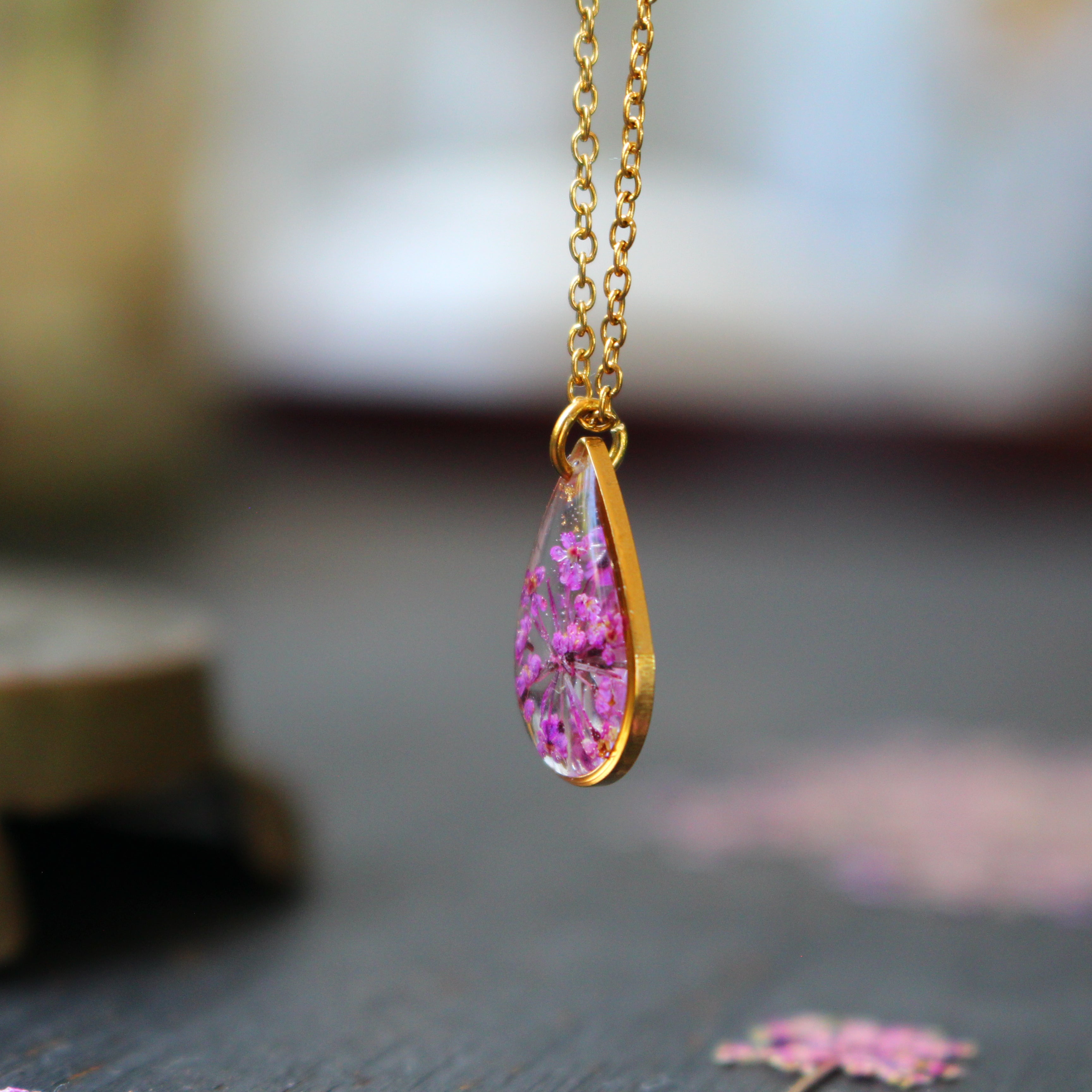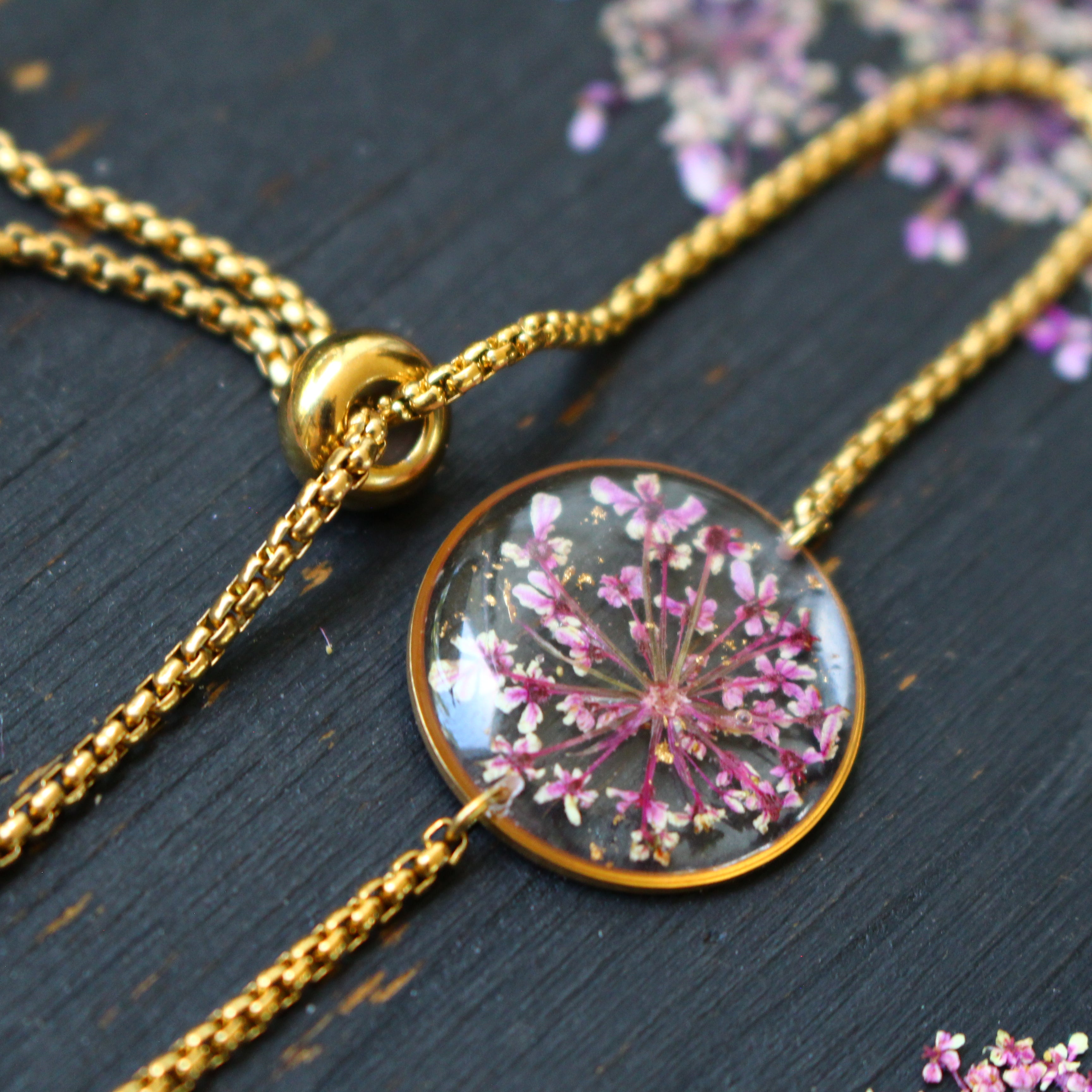 Depuis mon atelier à Saint-Leu, je crée des bijoux uniques à partir de matériaux naturels comme des fleurs, des pierres, et des coquillages.