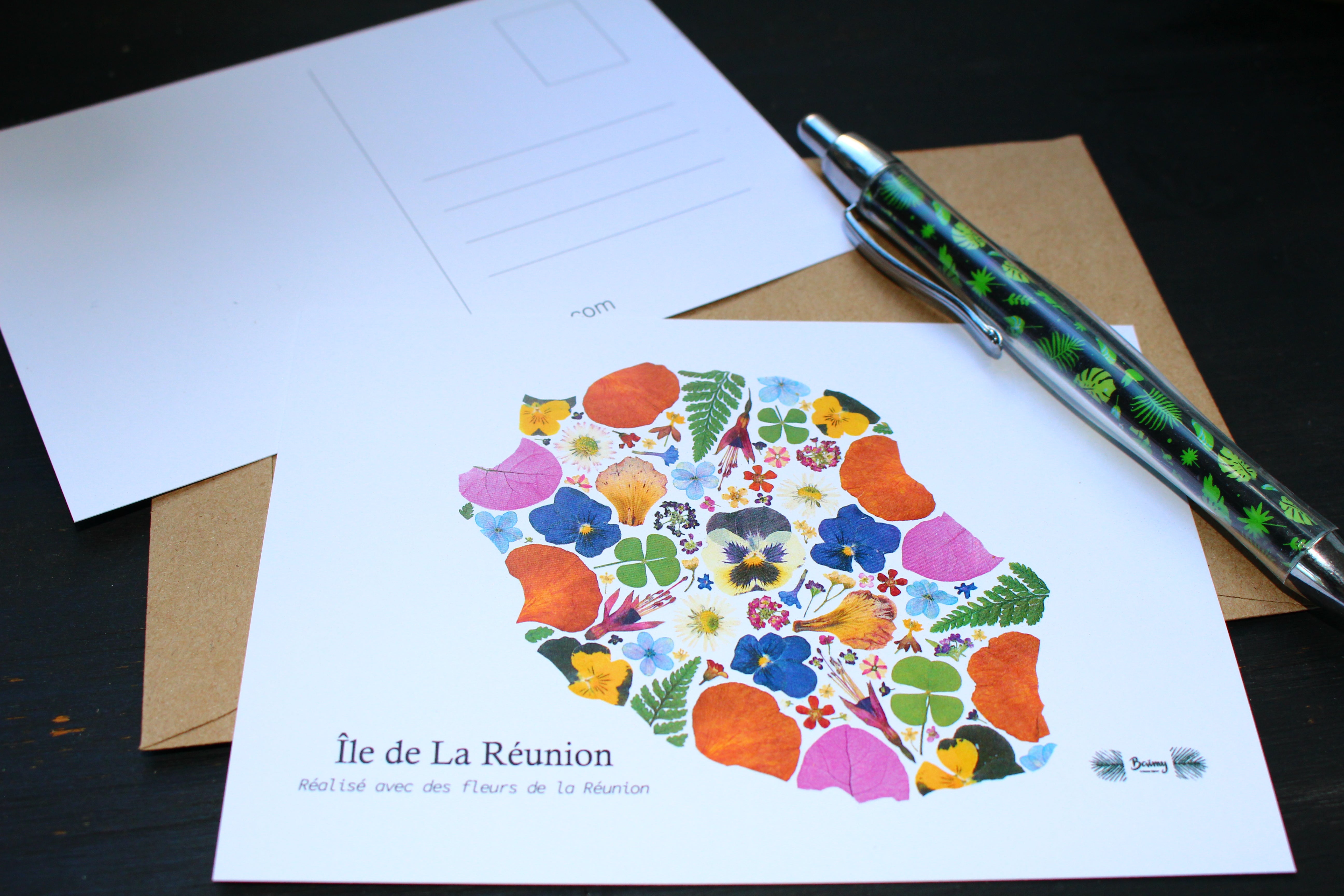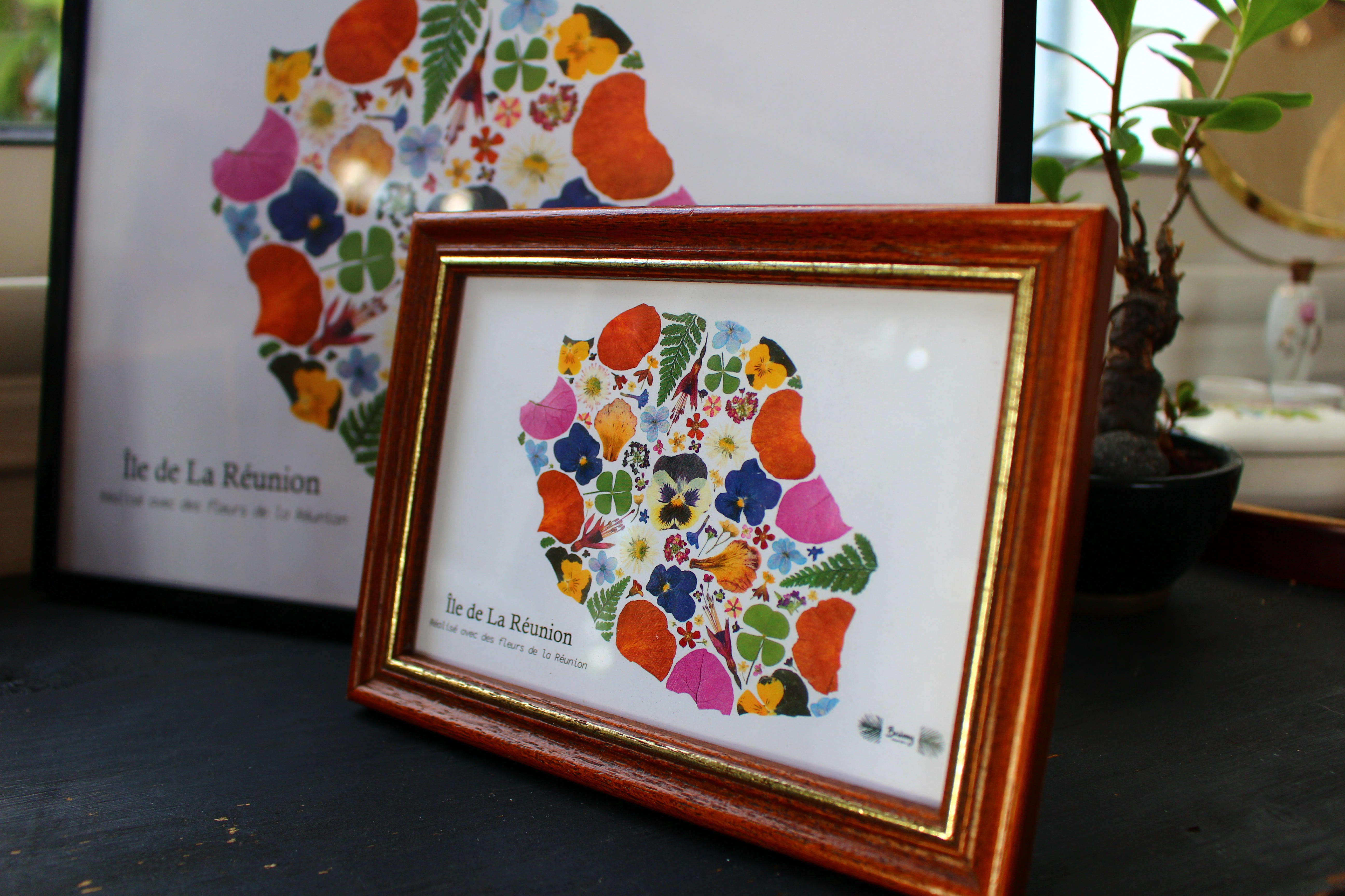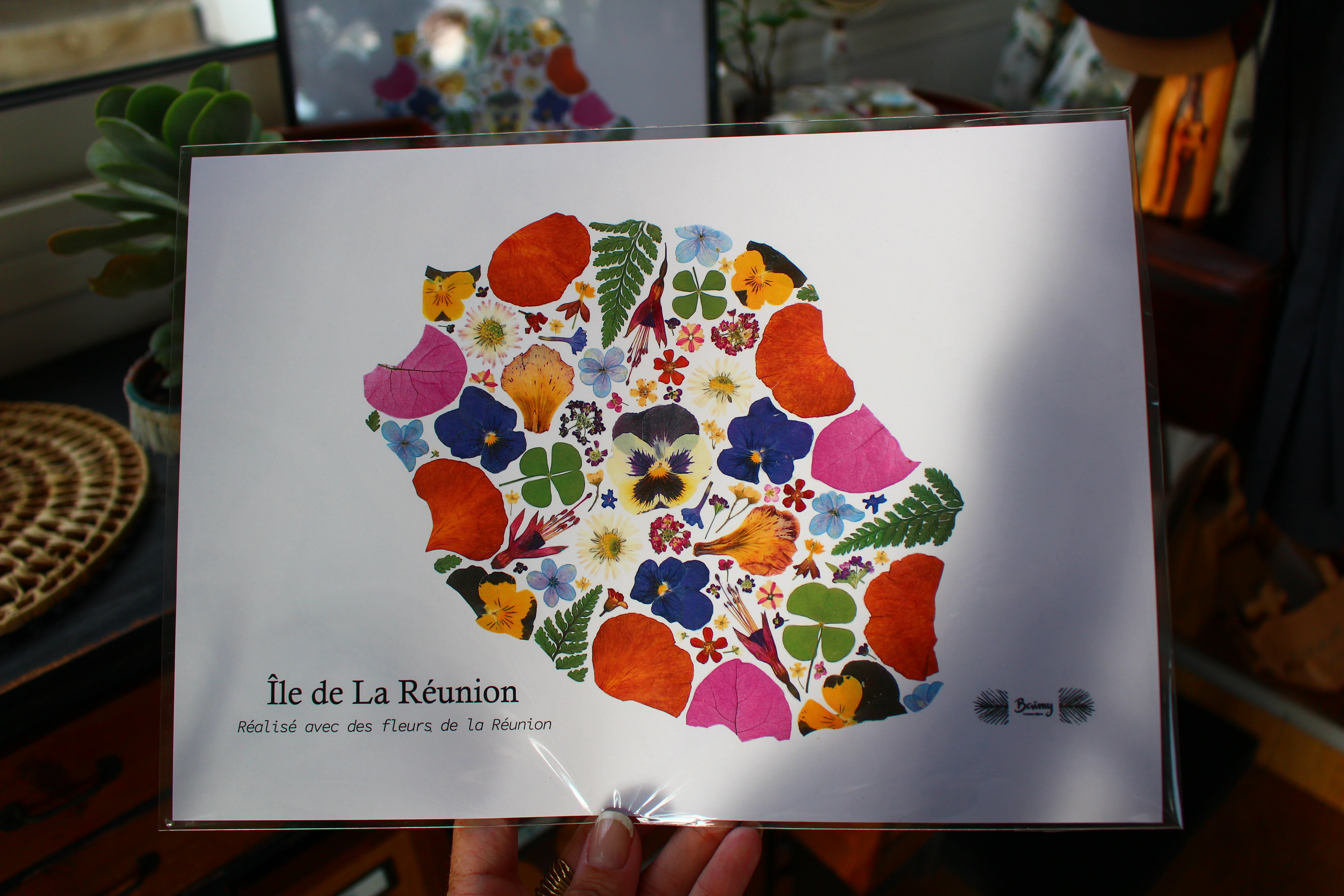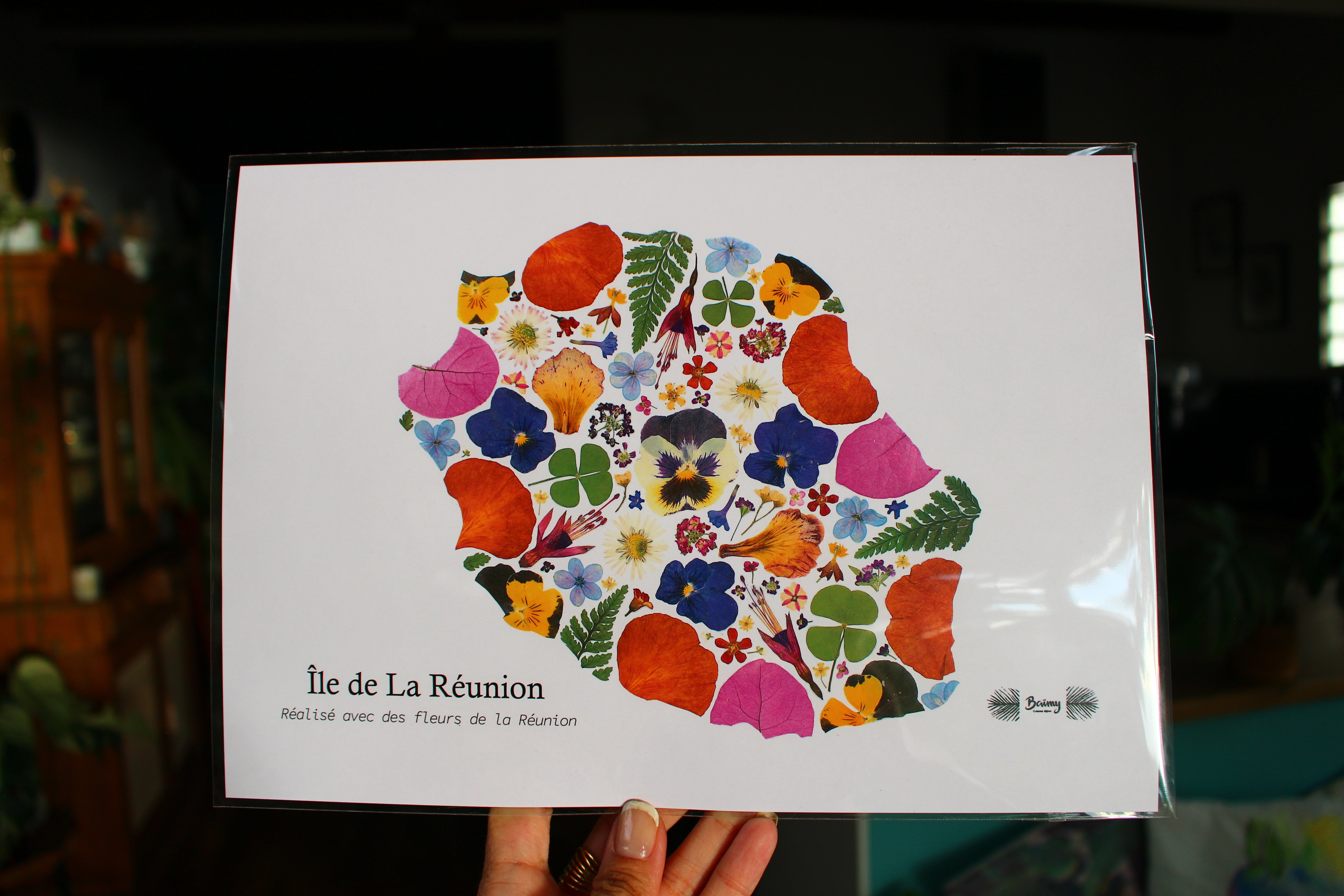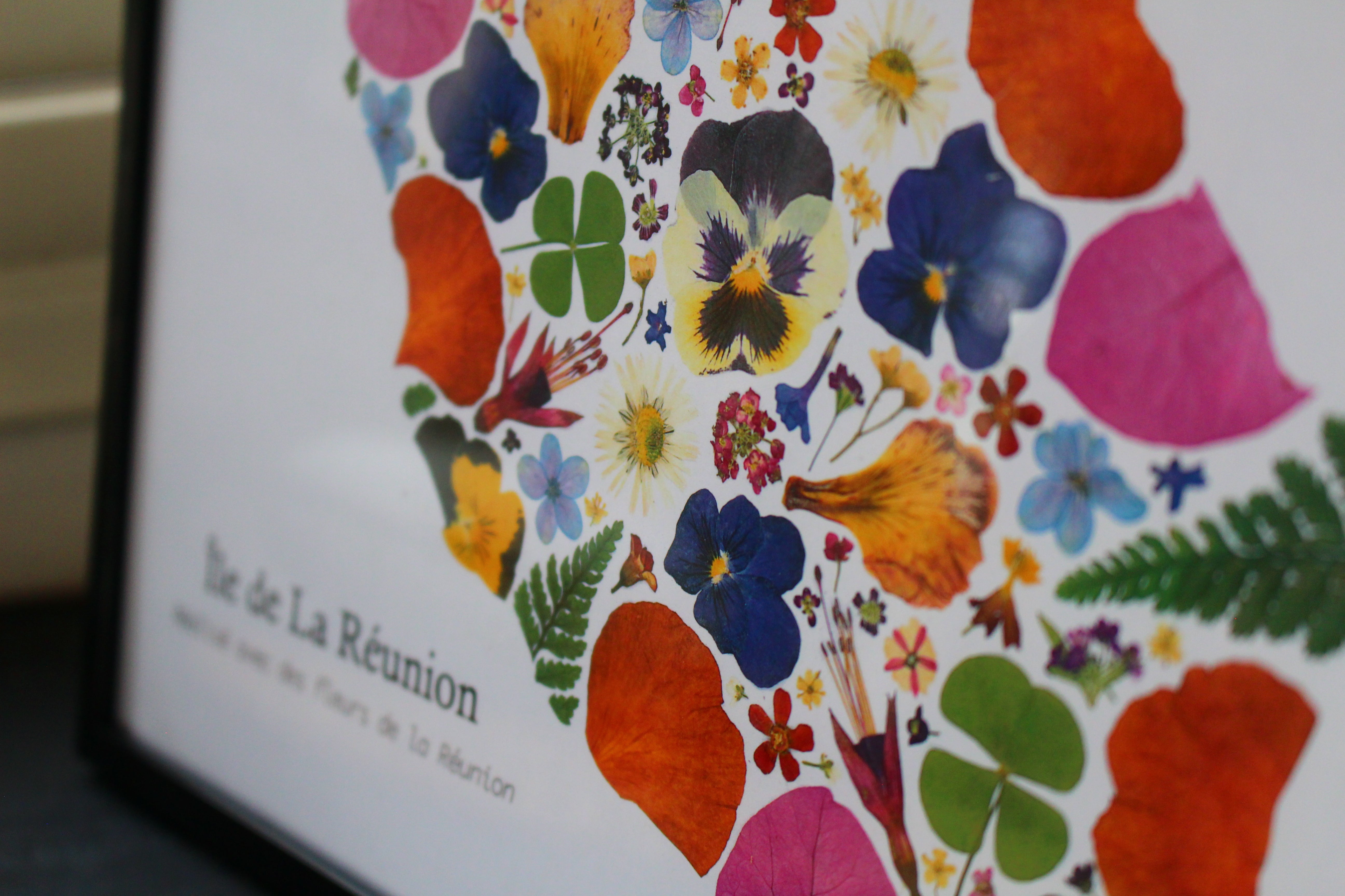 C'est une reproduction d'un original réalisé en format A4 avec des fleurs et végétaux provenant de l’île de la Réunion.