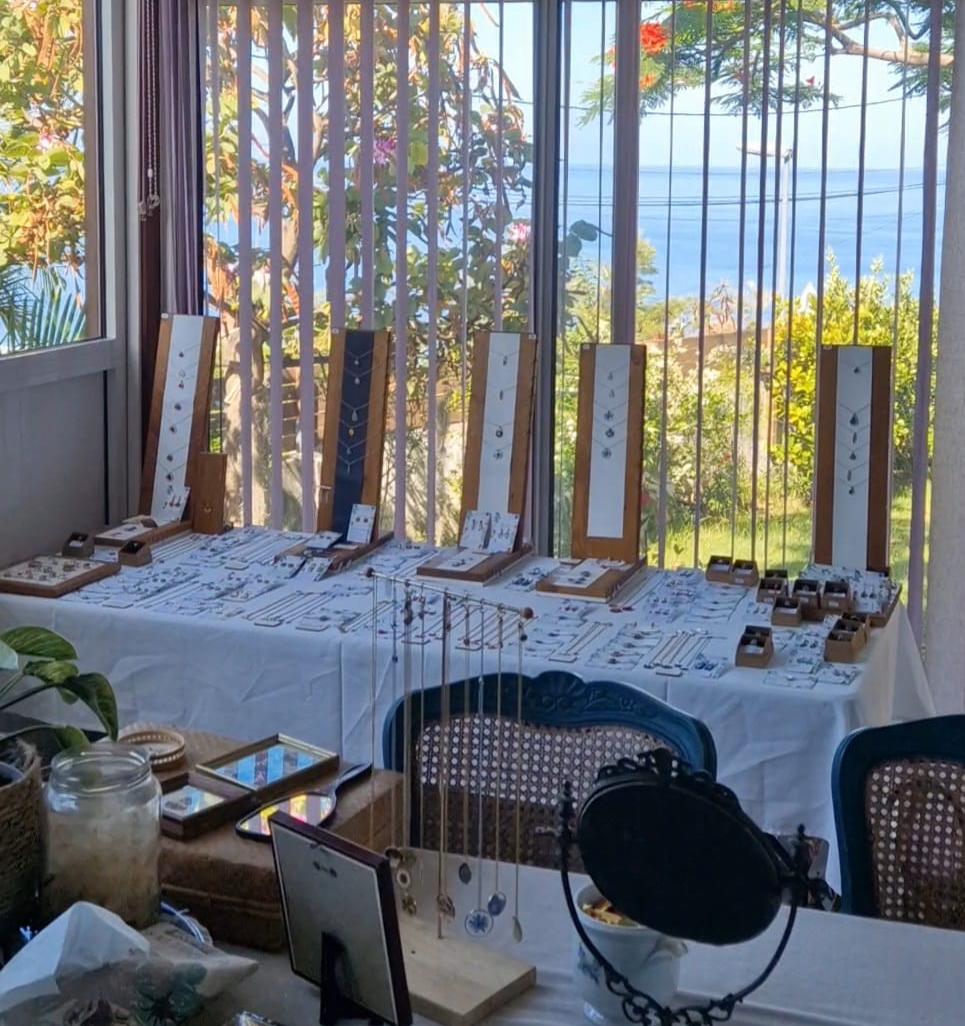 Si vous ne pouvez pas venir me retrouver au marché, le show-room de Saint-Leu vous reste ouvert toute l'année. Venez découvrir les bijoux au calme, essayer vos coups de cœur et discuter création autour d'un thé.